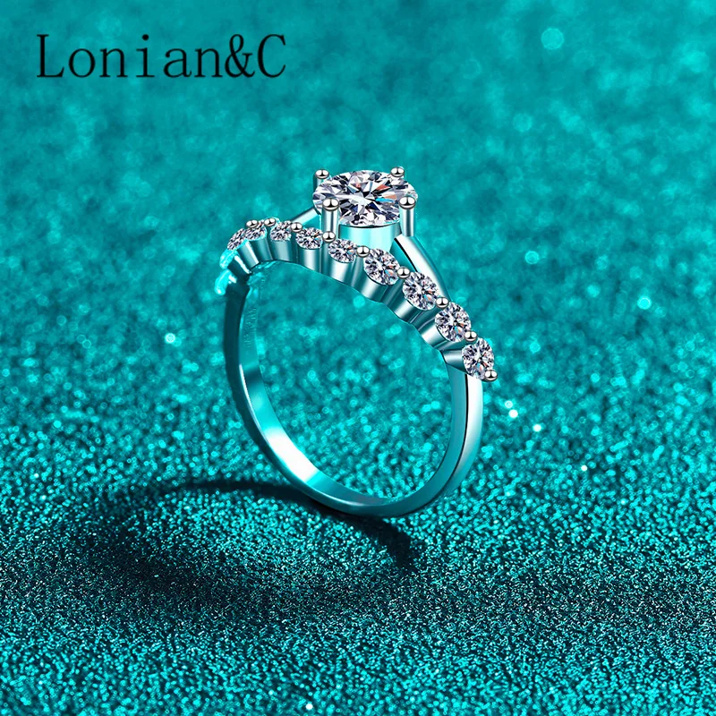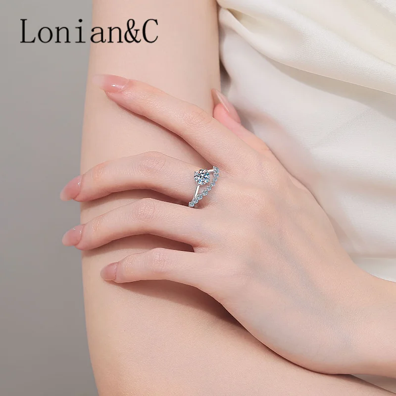 Lonian&C 100% 925 Sterling Silver Plated 18K White Gold Moissanite Ring Elegant Simple Finger Band Jewelry Perfect Festival Gift