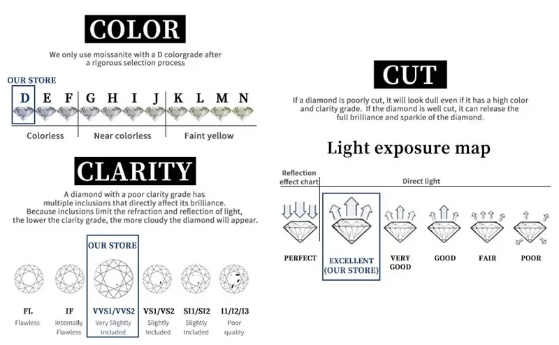 1. Easy to save :Moissanite has a Mohs hardness of 9.25,The advantage of high hardness is that it is less prone to scratches and cracking, has better permanent preservation.
