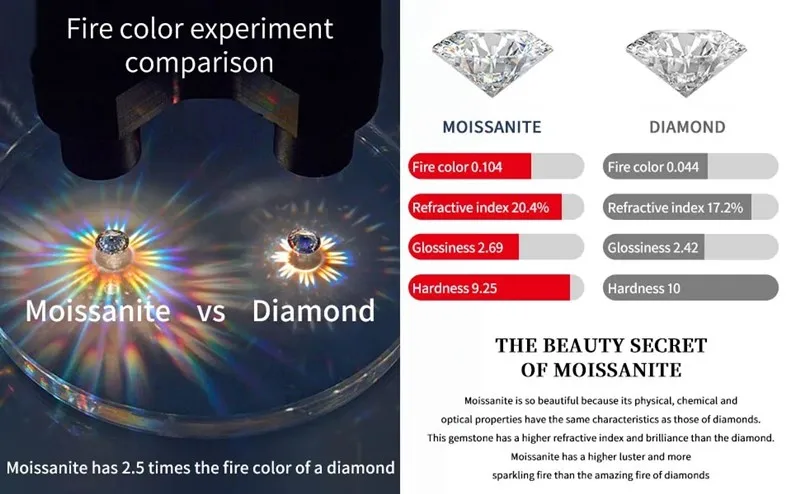 2. More dazzling :Moissanite's hues are 2.5 times that of South African diamonds.