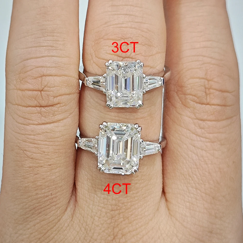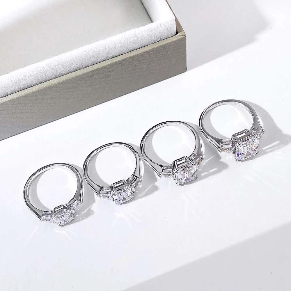 1-4 Carat Emerald Cut Moissanite Rings for Women D VVS1 Three Stone Diamond Engagement Ring Side Baguettes 925 Silver Jewelry