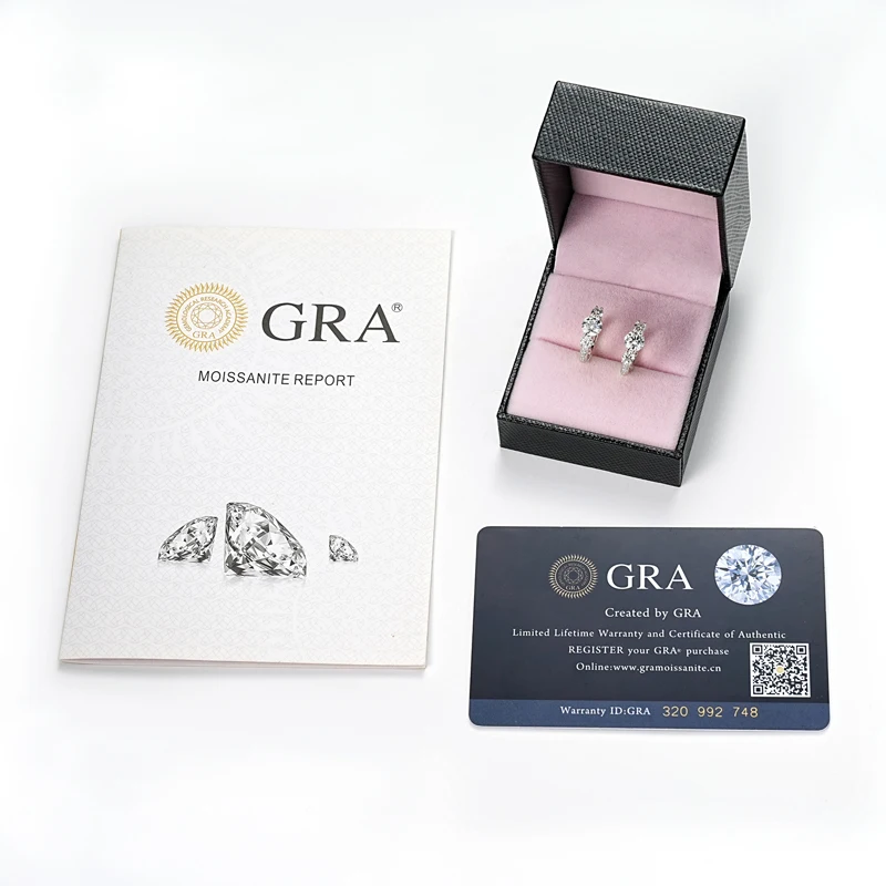 Lnngy Three Stone Moissanite Earring Original 925 Sterling Silver Hoops Earring For Women Girls Lab Created Diamond Jewelry Gift
